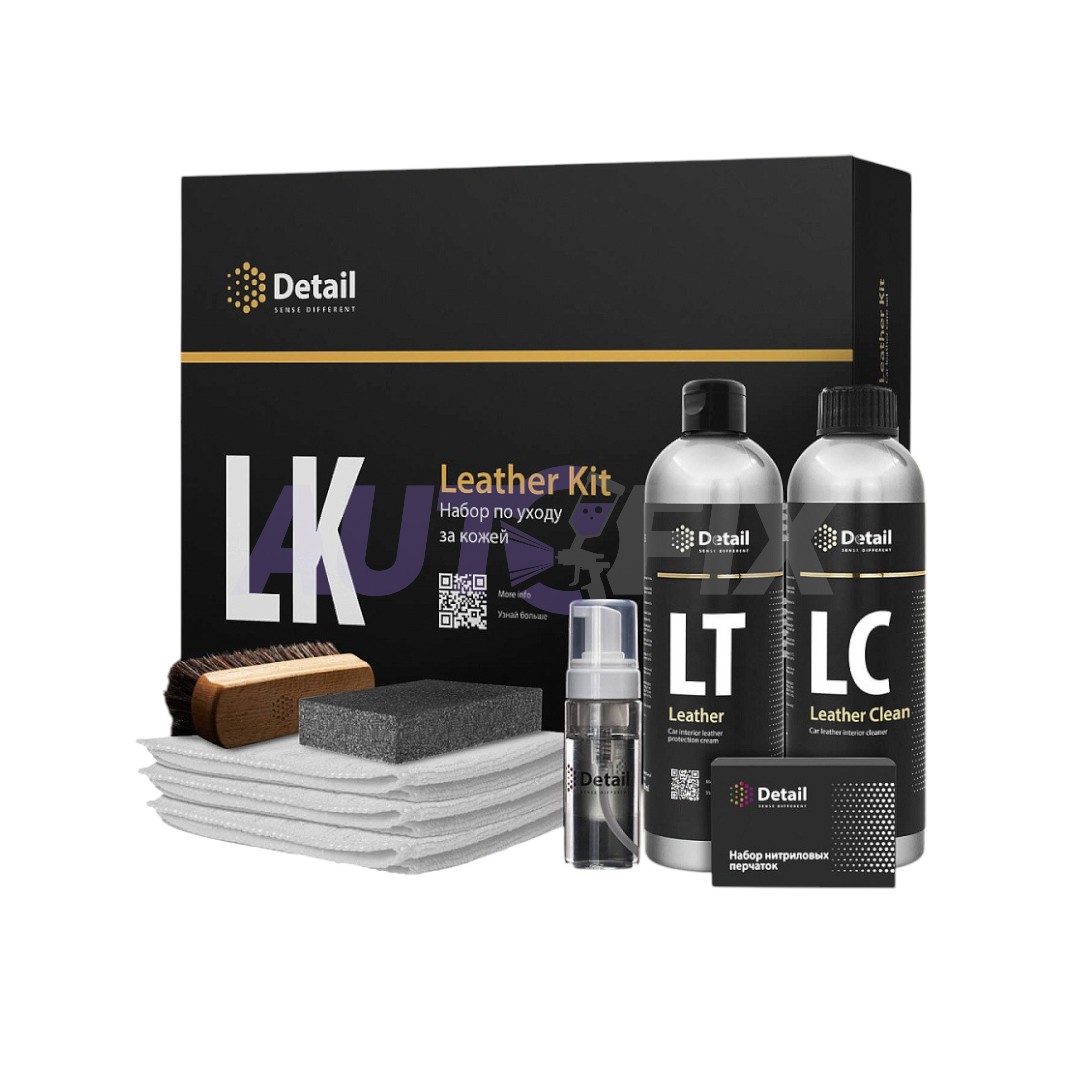 Набор Детейл ДТ-0171 предназначен для ухода за кожаным салонам автомобиля. Набор состоит из чистящего средства Leather Clean 500 мл, крема для защиты кожи Leather 500 мл, мягкой губки для нанесения крема, щетки для интерьера, пенообразователя, 3-х микрофибровых полотенец, набора нитриловых перчаток.