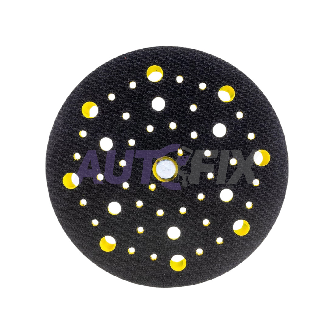 Описание:Подошва Русский Мастер диаметром 150мм для пневматических и электрических шлифовальных машинок может использоваться с абразивными дисками на 6, 7, 9 и 15 отверстий благодаря универсальному расположению на диске 52 отверстий. Шлифовальные круги крепятся на подошву при помощи липучки Velcro. Посадочный диаметр 5/16"x24.