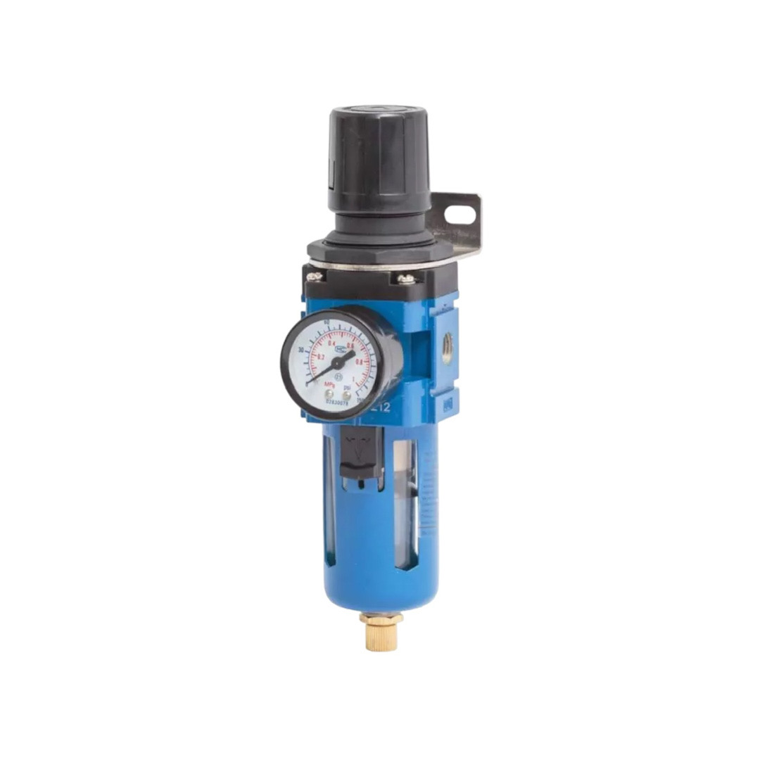 Описание:Воздушный фильтр с редуктором и резьбой 1/4. Предназначен для очистки сжатого воздуха от пыли, паров воды и масла, а также регулировки давления в пневматических линиях. Технические характеристики: размер присоединительной резьбы: 1/4", максимальное входное давление: 10 бар, степень фильтрации: 25 микрон, пропускная способность: 2000 л/мин.