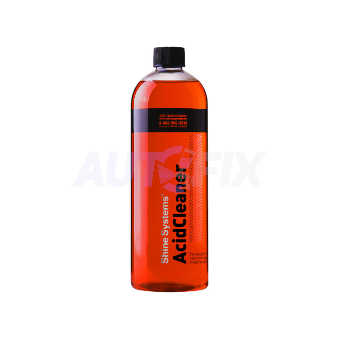 Шайн Системс Асид Клинер - универсальное средство на кислотной основе, которое используется для удаления ржавчины, колодочной пыли и прочих загрязнений с колесных дисков, выхлопных труб и других элементов экстерьера автомобиля, устойчивых к кислотным составам. Не подходит для применения на алюминиевых, анодированных и хромированных поверхностях, а также для мойки кузова и моторного отсека автомобиля.