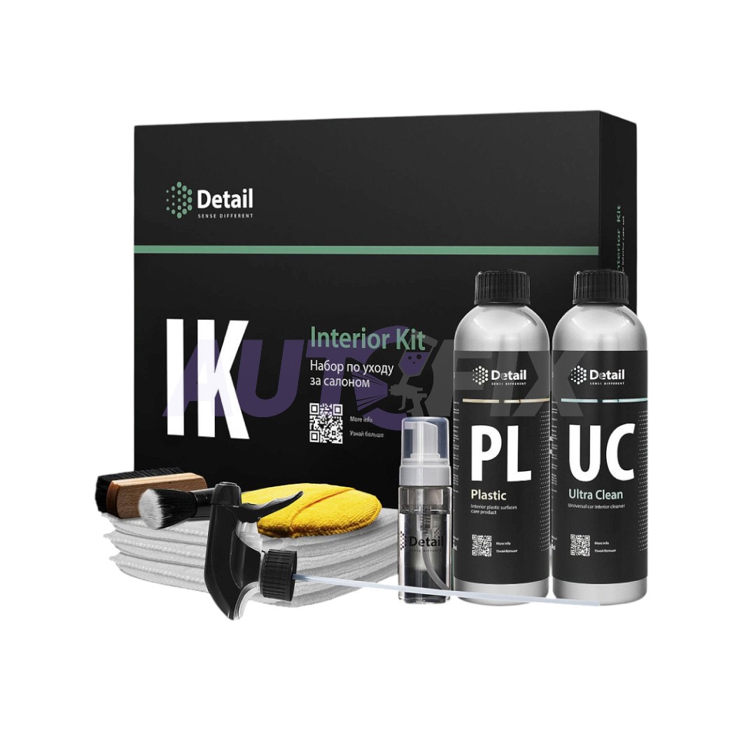 Набор Детейл ДТ-0345 предназначен для ухода за cалоном и включает в себя средства для очистки поверхностей, консервации пластика, а также различные аксессуары и инструменты. Состав набора: универсальный очиститель Ultra Clean 500 мл, состав для ухода за пластиком Plastic 500 мл, микрофибровое полотенце Ultra Lite 3 шт., пенообразователь, щетка с искусственным ворсом, круглый микрофибровый аппликатор, кисть с ультрамягким искусственным ворсом #12.