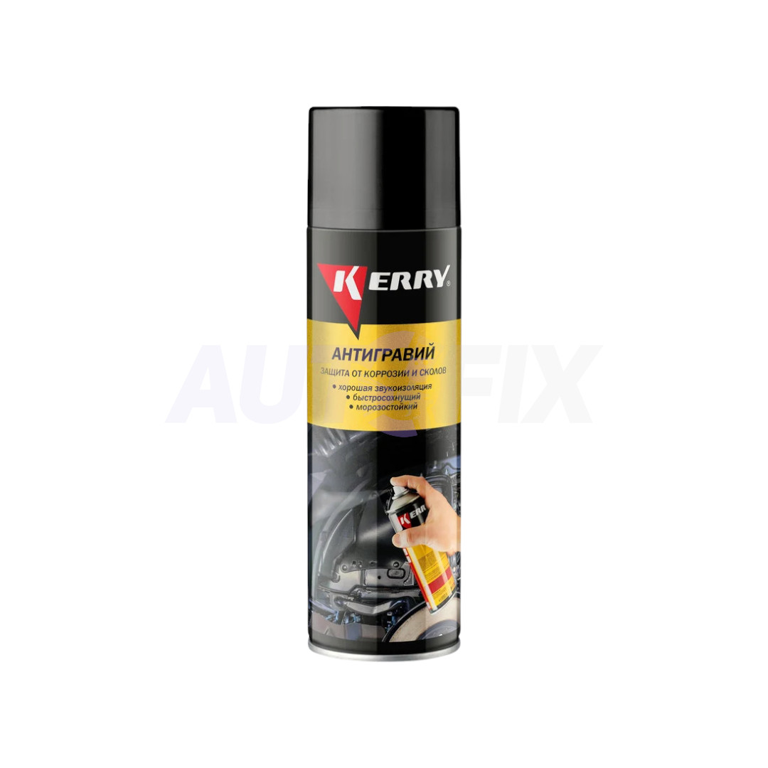 Серый антигравий Керри эффективно защищает элементы автомобиля от летящих камней, неблагоприятного воздействия дорожной соли и химических реагентов. После нанесения образует эластичное антикоррозийное покрытие, обладающее стойкостью к резким перепадам температур. Отличается хорошей адгезией и звукоизоляционными свойствами. После высыхания покрытие может быть окрашено большинством типов эмалей.